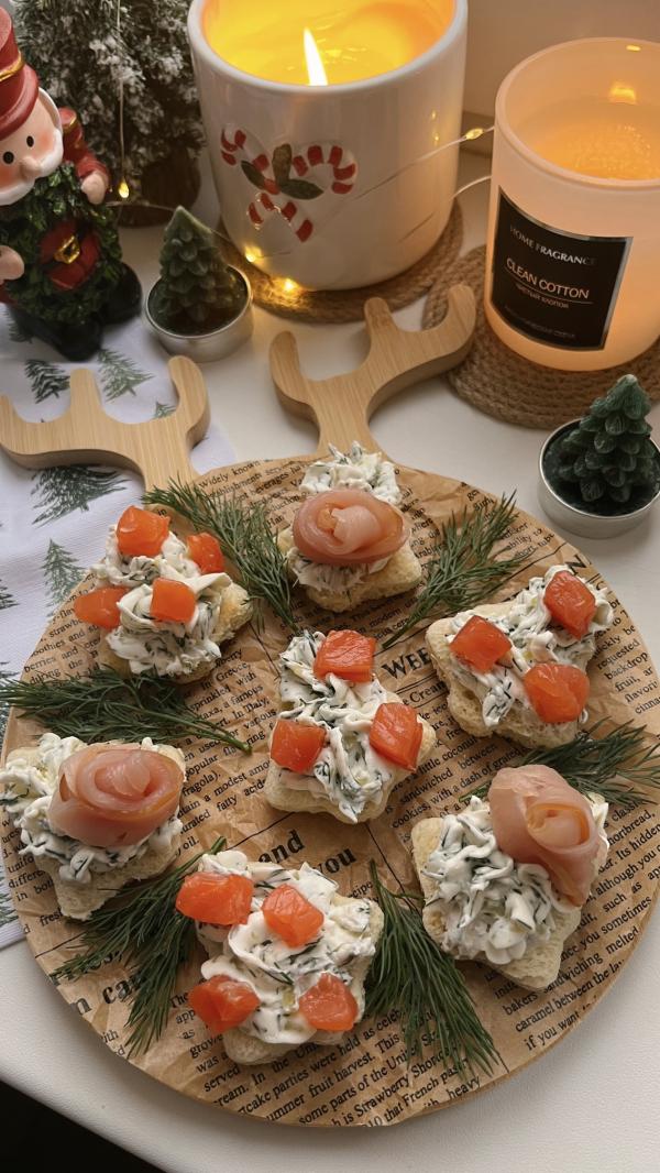 На готовый хлеб выкладываем наш крем (я использовала кондитерскую насадку) и сверху украшаем рыбой и нарезкой.