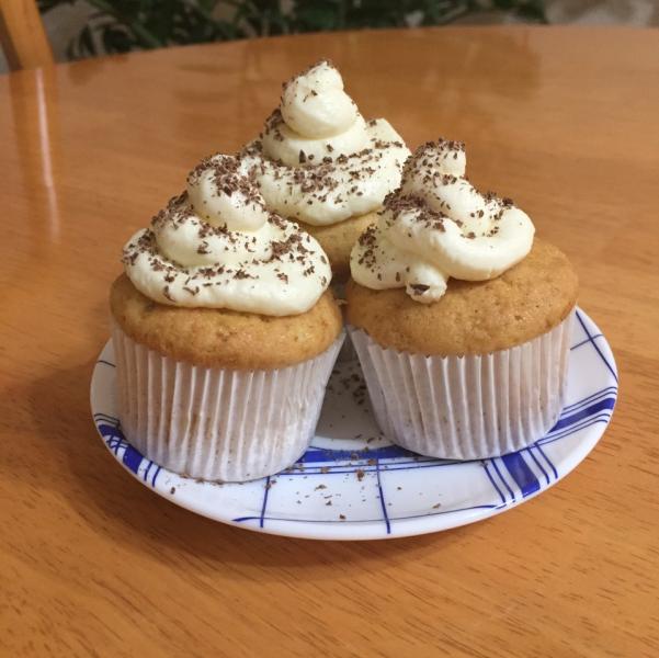 Крем: сливочный сыр (альметте), сливочное масло, сахарная пудра и ванильный сахар, а пекла в алюминиевых формочках предварительно вставила в них бумажные формочки)