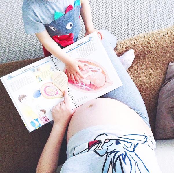 После покупок подгузников и пелёнок, стирки одежды и появлении люльки в кроватке, Миша начал задавать вопросы о появлении братика на свет. В такие моменты главное не отнекиваться, а снова взять энциклопедию и наглядно всё рассказать и показать. Последний раз мы смотрели эту книгу ещё в начале беременности, сегодня вопросов появилось в 2 раза больше. Я не стесняюсь рассказывать Мише о естественных процессах, ведь благодаря этому ребёнок лучше начинает меня понимать. Например, сейчас Миша перестал шуметь и катать по ламинату громкие машины, говорит, что Илюша может испугаться. Или несколько раз в день приносит подгузник и говорит, что скоро там будут какашки 😂 и что его обязательно нужно будет выбросить, чтобы не пахло. Снова начались покатушки коляски с игрушкой по всей квартире)) Я повесила для Миши на его доску календарь и теперь каждое утро он обводит в кружочек новый день и показывает на день X, когда маму увезут в больницу. И много много ещё всего интересного у нас происходит каждый день 😌
