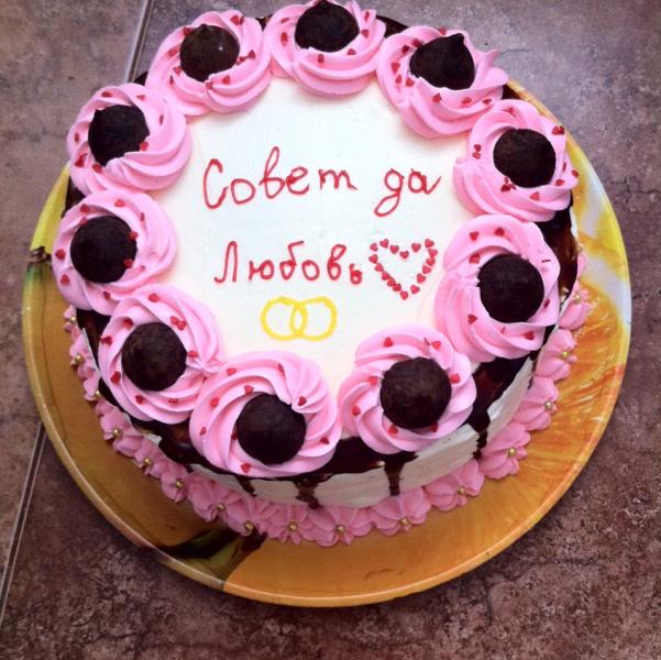 Мой первый торт с надписью для брата, писала сахарными карандашами, я конечно еще тот "писальщик" со школы плохой почерк, а кто чем еще делает надписи???