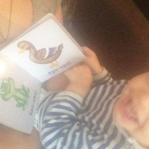 мы с года где то показываем и изображаем собаку,кошку,курочку,петуха,ослика,лягушку,льва, уточку,овечку. показываем как летает птичка. найдем светофорфонарь,колеса машины) но у нас просто необыкновенный интерес к книгам. он может часами их сидеть изучать, спрашивать меня что где или сам будет что то лепетать)