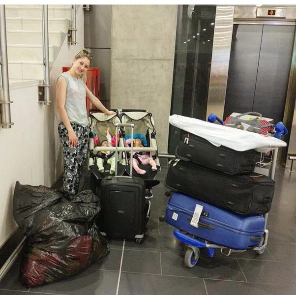 Один большой чемодан - все вещи, понятно, что наших с мужем меньше половины чемодана, остальное девчонок 👭 ещё один большой чемодан - мультиварка (с ума сойти, да? 🙆🏼 но мы решили её брать, во-первых, она делает кипяток, во-вторых, варит гречневую кашку), погружной блендер (хорошо делает фруктовое пюре, вилка оставляет комочки), фен. В двух маленьких чемоданах - 1 упаковка подгузников (на неделю), овощные-мясные-пюре на неделю, смесь на всё время поездки, печенье и каша флёр альпин на всё время поездки. И по мелочи везде какие-то пелёнки, вещички добавлены, немного игрушек, парочка книжек-сказок. С собой в поездку нам одолжили 2 кресла-шезлонга (мы из них кушаем и получаем максимум позитива от самостоятельного раскачивания 😁😍), которые в аэропорту замотали плёнкой с наклейкой 'стекло' и взяли бесплатно, как негабарит 👌🏼 самая главная сумка (серо-розовая), которую взяли с собой на борт- 6 подгузников, влажные салфетки (четверть упаковки, чтоб тяжести не придавало, а много и не пригодится), 2 маленькие бутылочки воды фрутоняня, 1 чайная ложка обычная, лекарство (противосудорожное), 1 маленькая книжка стихов, 2 маленькие именные иконки, самые любимые игрушки (именно в самолёте они не пригодились, но понадобились вне самолета😉), 6 банок овощного пюре+2 банки мясного+2 банки фруктового пюре (вкусы только те, которые точно будут кушать), несколько тканевых пелёнок на всякий случай. Ещё у мужа рюкзак был с техникой (ноут, планшет, зарядки, всё такое) ☺️ воооот 🤗🤗
