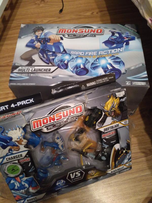 Новая игрушка - автоматическое боевое пусковое устройство торговой марки Монсуно (коробка повреждена) и к нему боевой набор из 4 капсул (коробка тоже повреждена). Все вместе за 1800 отдам. В магазине это все можно купить примерно за 3700.