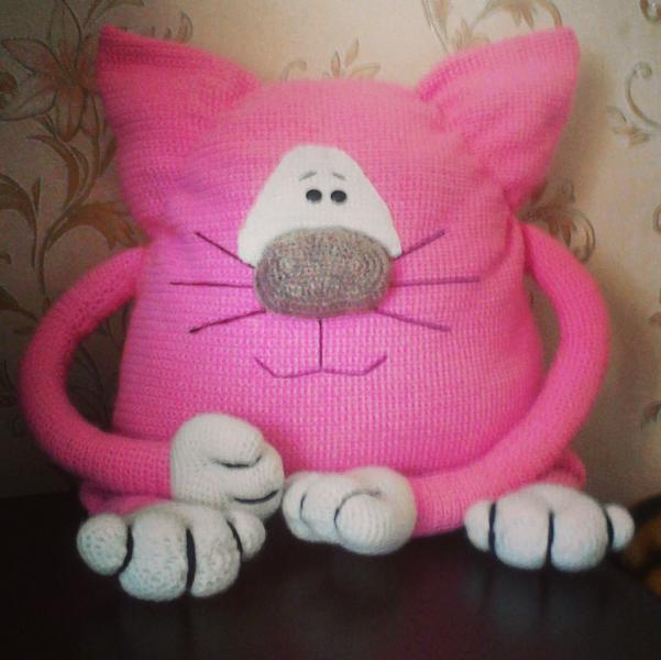 Эта подушка-сплюшка была связана перед родами. Теперь мы её таскаем за ручки и уши с удовольствием. Размер 40×40 Она на молнии, снимается, стирается и опля )))