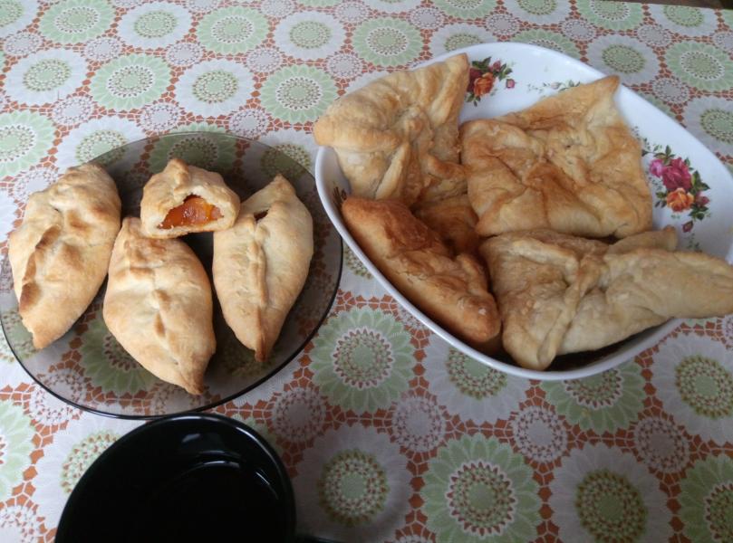 Вот такая вкуснятина получилась с утра пораньше 😊пирожки с курагой и конвертики с курицей 😋