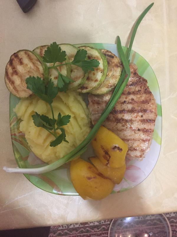 Стейк из индейки на грилле, с картофельным пюре и др.оврщами😋😋😋 быстро и легко