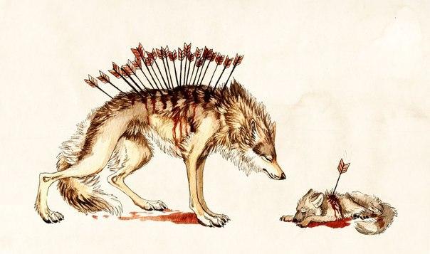 За смерть его волчицы и детей.