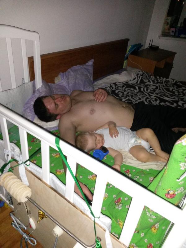 А у нас вчера Максим укладывал Мирошку на ночь. Захожу в комнату а там колыбельная играет и вот такой вид....😂