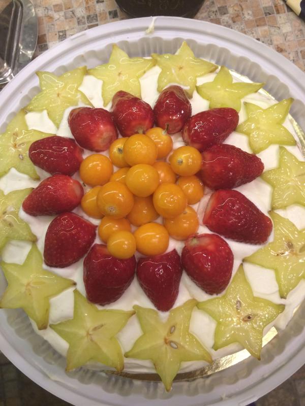 А мы отметили день медика на дежурстве))) я состряпала тортидзе на все отделение. 3кг красоты 28см диаметром, три бисквитных не масляных коржа, грецкие орехи, взбитые сливки, карамбола, физалис и клубника. Эффект вау был достигнут по всем параметрам 😂😂😂