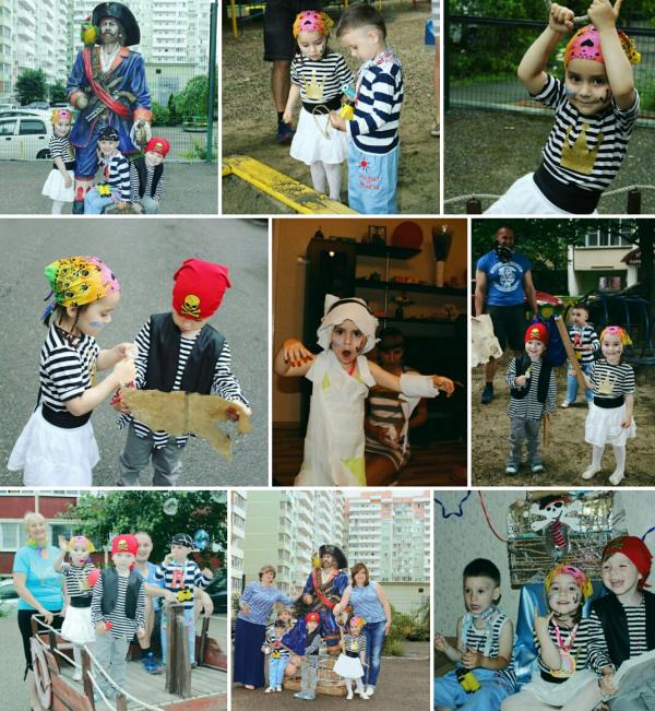 Устроили с мамочками сообща Пиратскую вечеринку и Пиратский квест ко дню рождения друга Маруси, Ростика. Я получила удовольствие когда делала сундук, придумывала флаг и старила карту кофем и утюгом..а потом жгла ее😂😂😂🙄 Малышня сначала получила задание найти все для пиратов...лопали шарики с записками) А потом искали конфеты по карте и главное ключ от сундука с сокровищами! Все происходящее проходило в двух дворах) Вот преимущество ДР летом) Конечно искали и сундук...а потом все радовались подаркам не только именинник..и получили медали за свои заслуги) Впечатлений точно хватило, надо и без повода повторить)