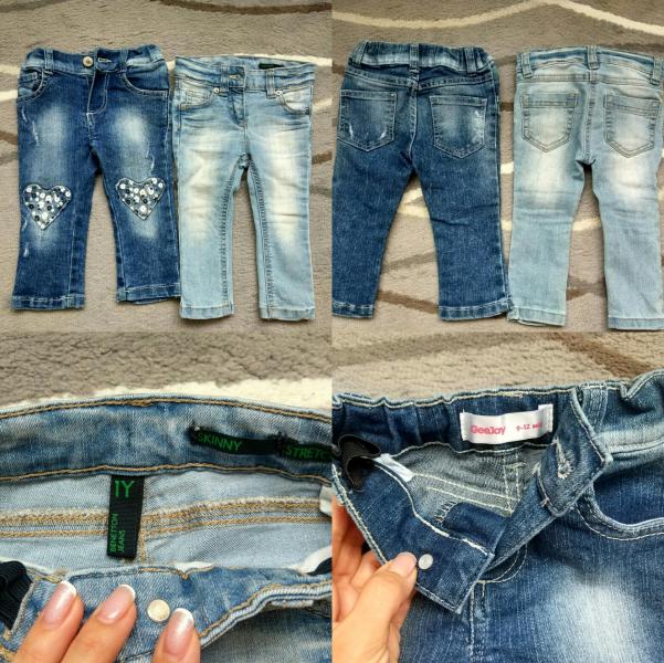 Девочки, продам джинсы на девочку. Голубые Benetton (можно носить с 74 см, джинсы ростовкой 82, скинни, подойдёт на худеньких девочек) 500 р., синие Глория джинс ( рост 80 см) 300 р. Джинсы с утяжками.