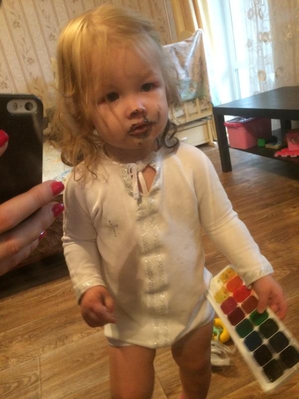 Маленькая мартышка🐒с красками🌈,вытащила из портфеля сестры...и в тихую ходит лижет их😂