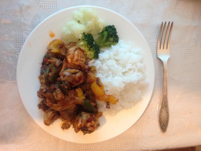 Сегодня готовила курицу с овощами, на гарнир - рис и капуста (брокколи и цветная капуста) 🍀🍀🍀