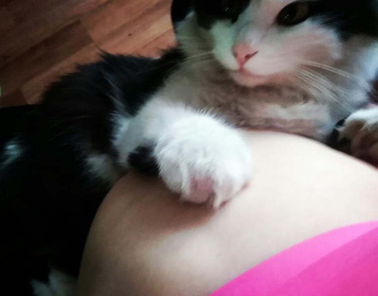 У меня кошка тоже постоянно у пузика трётся! И это началось недавно,до этого ходила деловая будто не замечает😂