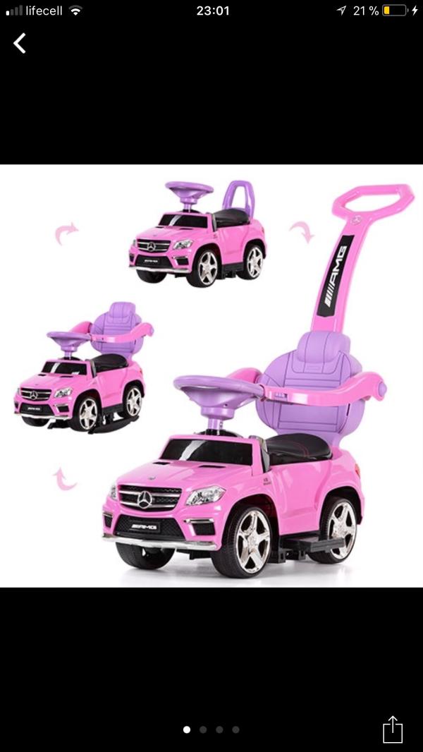 у нас такой только без ручки родительской, колеса поворотные передние, но управлять не очень удобно