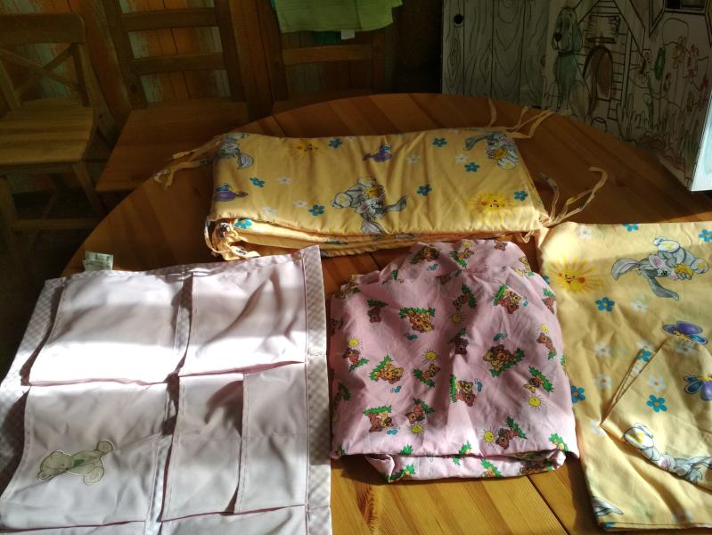 Отдам- борта (желтые) для кроватки, 2 простыни и 2 наволрчки, икеа органайзер, на Ямашева. Бельем практически не пользовались