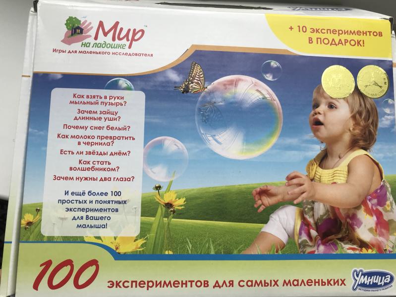Сегодня это коробка от Умницы «Мир на ладошке. 100 экспериментов»