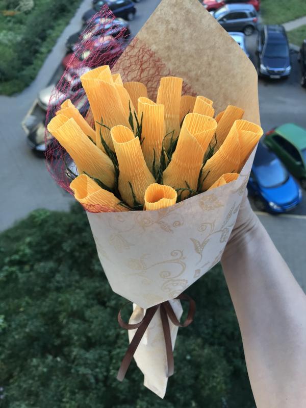 «Букет из конфет» Отличное решение к 1 сентября. В букете 17 бутонов в каждом шоколадная конфета. 14 рублей.