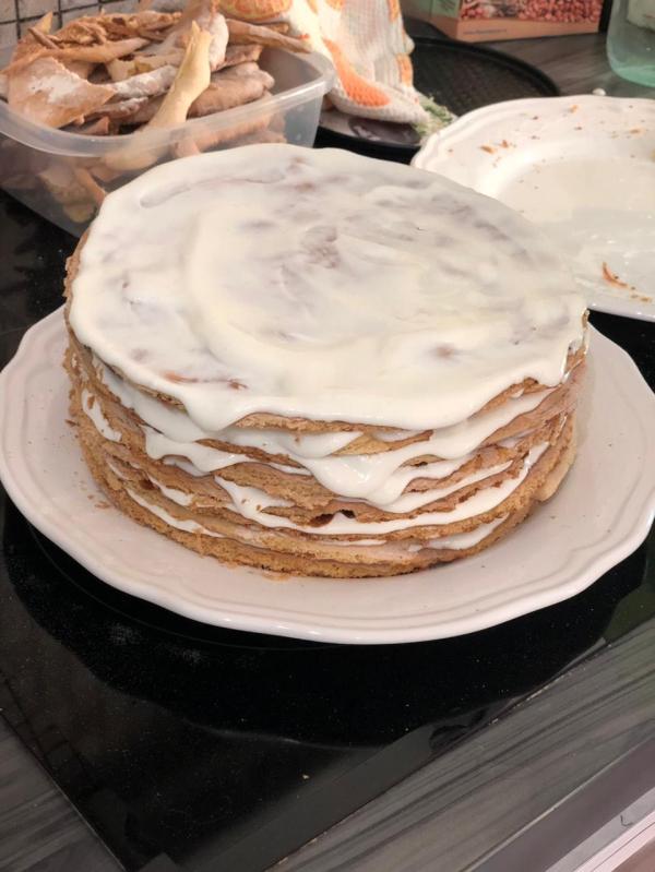 Мой медовик 🍯мазала коржи с младшим на руках) уложила и пошла готовить, а он взял и просунулся через 15 минут... но процесс был запущен🤪
