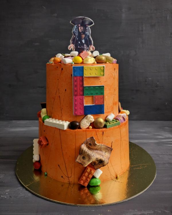 Мальчуковый торт. Готовила для крестника. Любит оранжевый цвет, Лего и пиратов😁 4 кг. #афонинторт