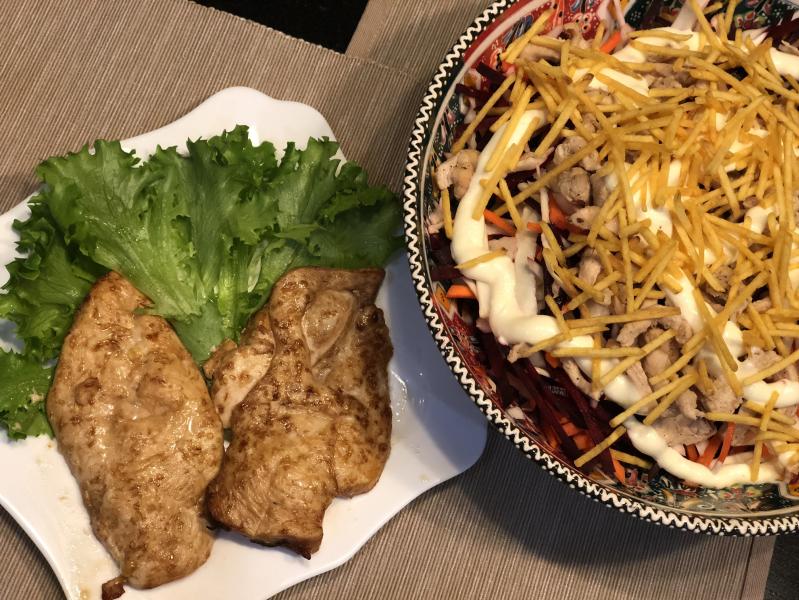 У меня тетя такой делает давно, только вместо курицы говядина отварная.. капец как нравится этот салат..😍