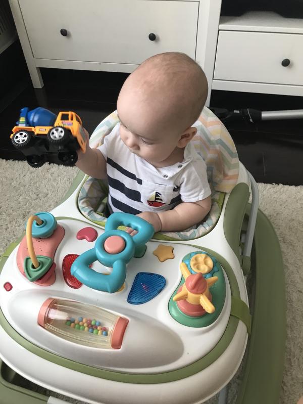 Мой сразу выворачиваться начинает. Не могу даже ручку положить, надо на живот и всё🤦🏼♀️