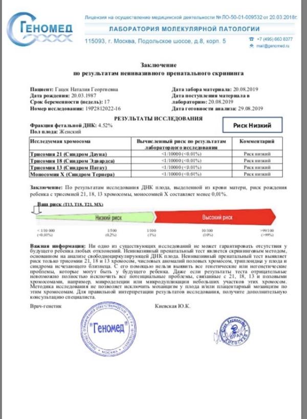 @pro_ira, да, носовая кость 4 мм, воротниковое пространство 2 мм, по крови гормоны тоже в норме, а почему-то программа лаборатории выдала повышенный риск🤷🏻♀️ мы понимали, что скорее всего всё в норме, но решили полностью себя успокоить и сделали НИПТ;)