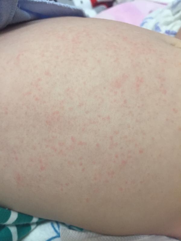 У нас такое было на одежду, которая плохо прополоскалась. Гель для стирки с рождения один и тот же, когда высыпало сказали что скорее всего контактная аллергия. Сначала в шоке была, ничего ж не меняли. Одела футболку из другой партии стирки и стало меньше, после этого стала 2 раза вещи полоскать и все прошло. На ощупь не чувствуется же? Просто точки?