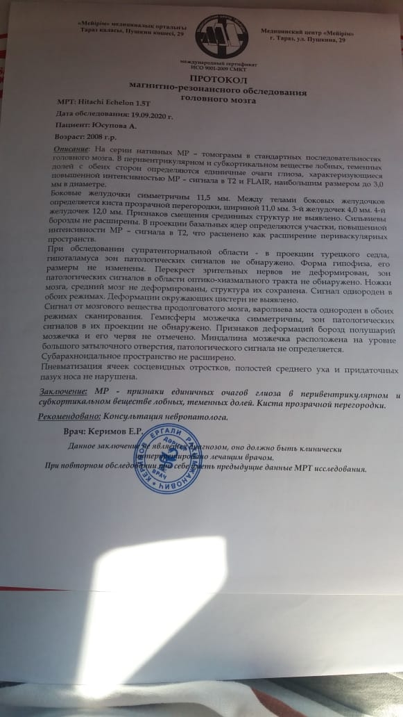 Кто сталкивался с таким диагнозом:Киста прозрачной перегородки головного мозга.Племяннице поставили такой диагноз.Кто сталкивался с этим?