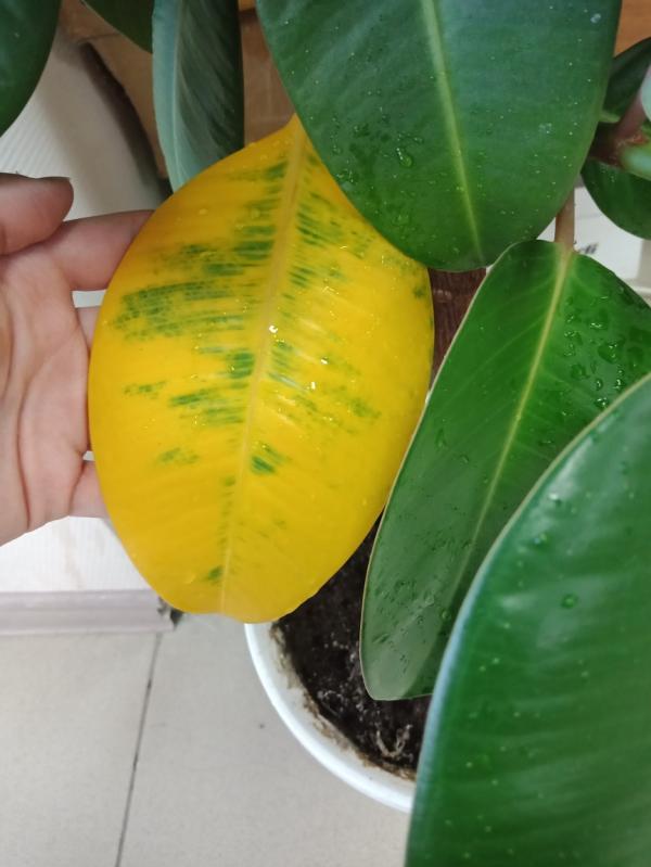 У меня такого сорта фикус,как у вас,вырос огромный ,но такого жёлтого листочка Нет