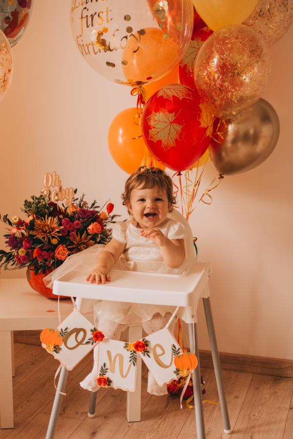 Повязочку с тыковкой делала на заказ у мастерицы, которая творит для ньюборн фотосессий. Она очень переживала, что Элинка стащит её с головы и всё рассыпется, но нет))) Видимо, доце очень понравилась такая красота и она была в ней весь вечер. Заказывала вот здесь
