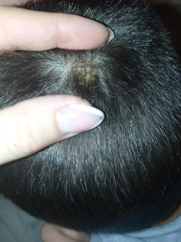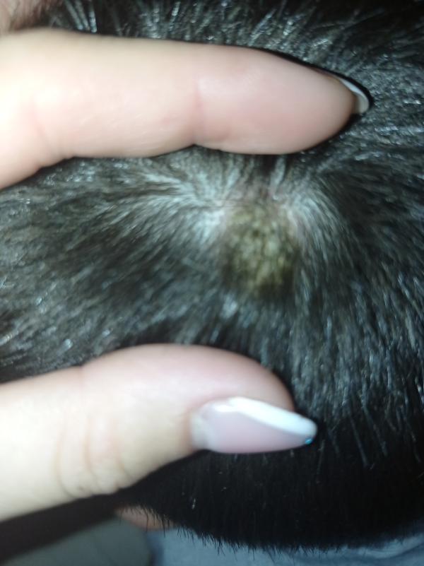 У старшого була пляма рожевого кольору на голові. Після перукарні почало рости і з'явилась шкірочка, як у немовлят на місці висипу.