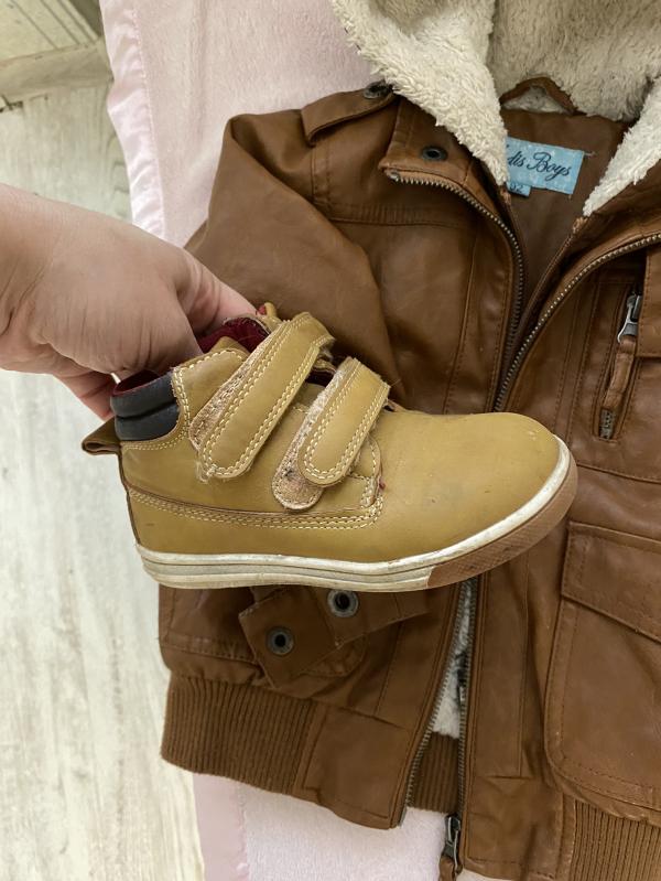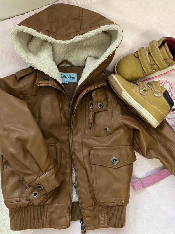 Куртка кожаная с мехом на 2-4 года 92-600 р Обувь 25 (ботинки-150,сандали Ecco 250 р) Пиджак H&M 2-4 года 450 р