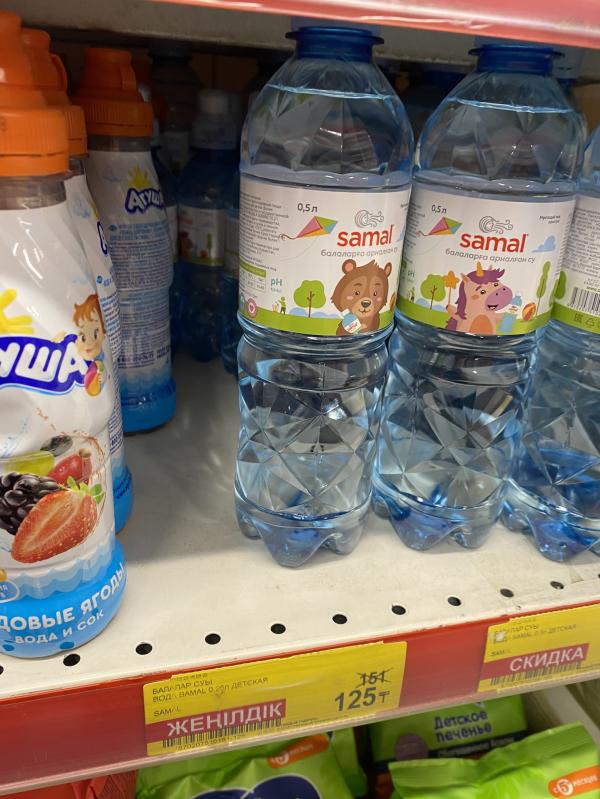 Мы тоже берем самал, еще мне нравится что маленькие бутылочки именно такого литража, а то с едой во рту начинает пить и туда все как напускает🙈🙈🙈 ну и да, пить удобно малышу) и цена классная…. была