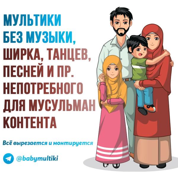 Канал @babymultiki занимается монтажом 🎬 мультиков на русском языке, где убирается: