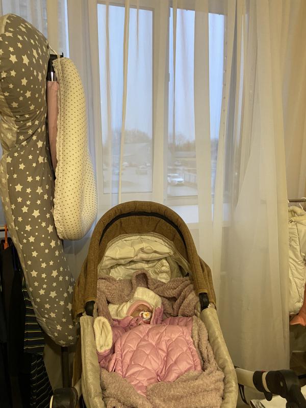 У меня спит когда только в комбез положу) гуляю так чисто для себя и старшей дочи) а когда лень идти тоже на балкон выношу и окна открываю