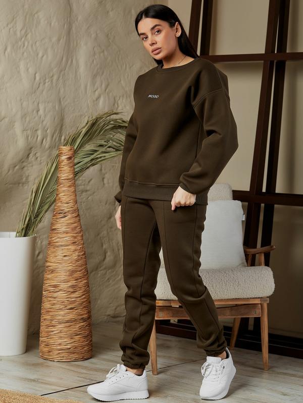 Теплий трикотажний костюм - знахідка на холодну пору року. Якщо Ви цінуєте комфорт та затишок, то такий комплект однозначно порадує. Костюм складається зі світшота та штанів. Світшот вільного силуету, низ виробу та рукавів на резинці.