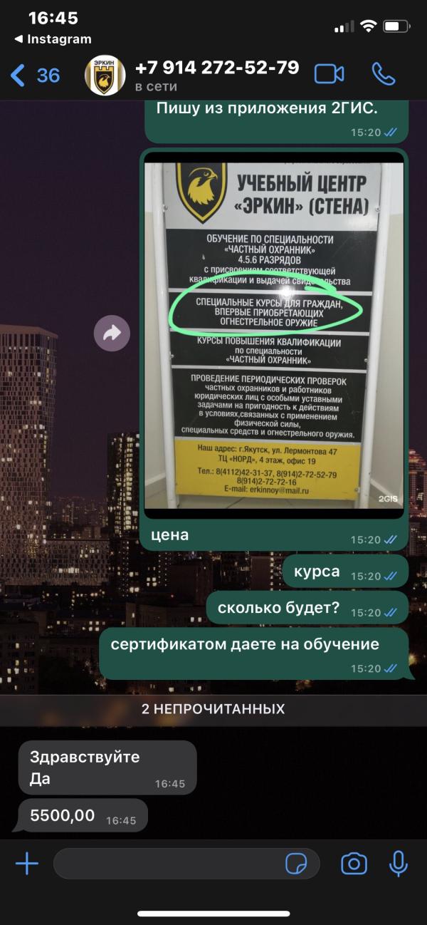 ЭРКИН находятся на Лермонтова 47 тц норд обучение на огнестрел, оружие стоит 5500₽ сертификатом дают