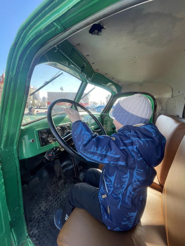 Везде можно лазить, сидеть в кабине, нажимать, крутить, сигналить, включать сирену, дворники, сотрудники рассказывают про технику.