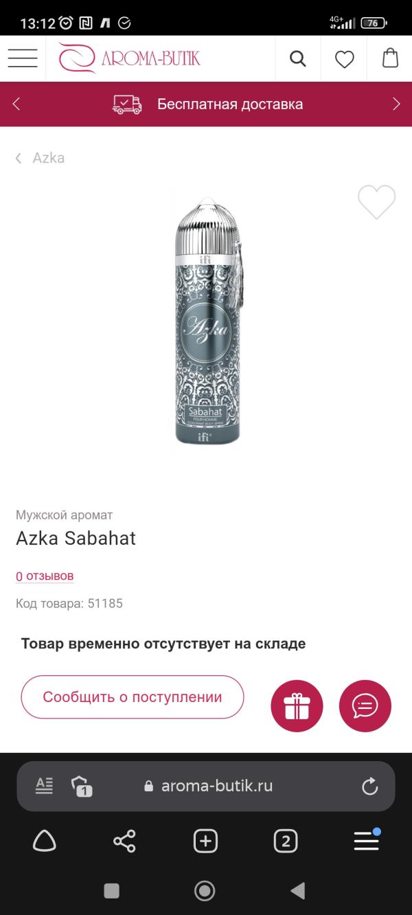 Фирма AZKA, именно запах Sabahat