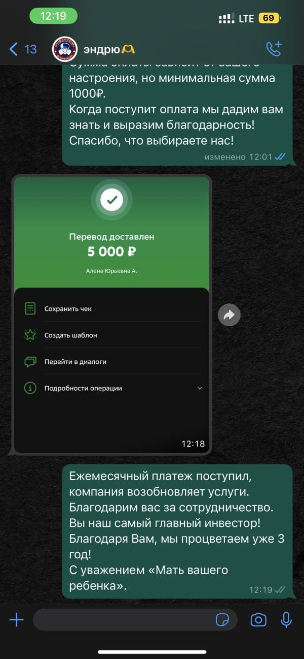 Сумма оплаты зависит от вашего настроения, но минимальная сумма 1000₽.