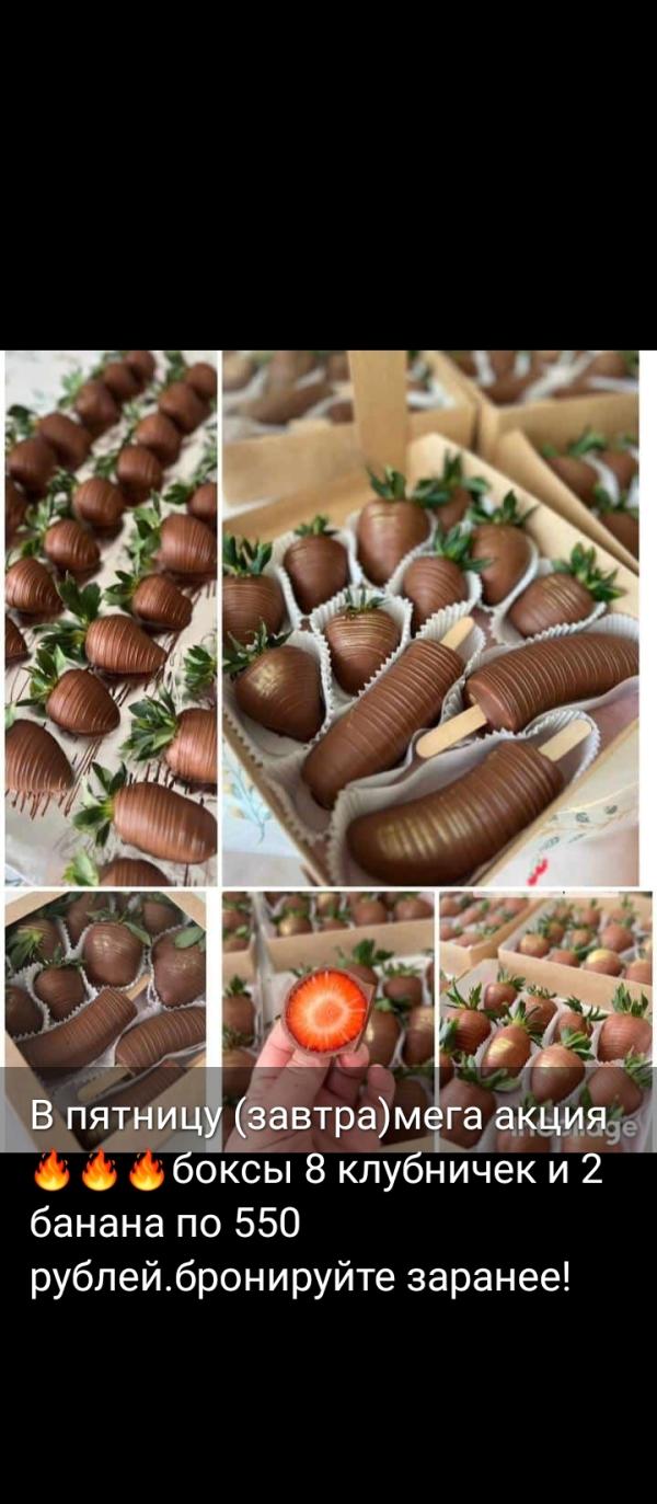 Девочки,сегодня клубника в шоколаде по 40 рублей,из-за того что маленький размер,банан 80,шоколад каллебаут,кому интересно скину в ватс ) 89298999288