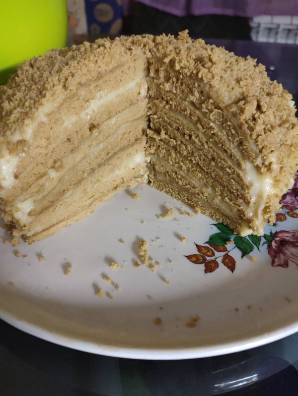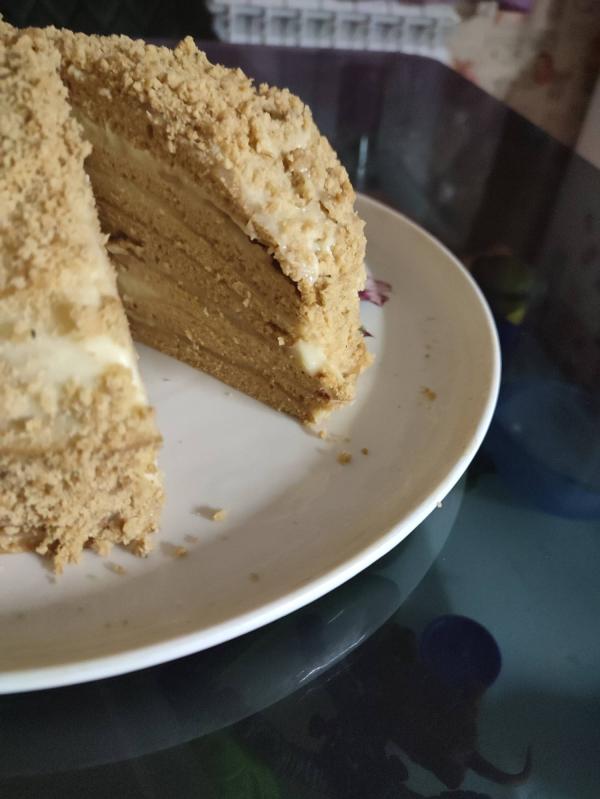 Когда были с мужем в магазине , хотел купить тортик. Потом передумал,сама говорит сделаешь. Муж на работу ушёл,а я сделала тортик. Вкусный, мягкий с заварным кремом,дрлжен быть шоколадный,но какао не было 🫣)