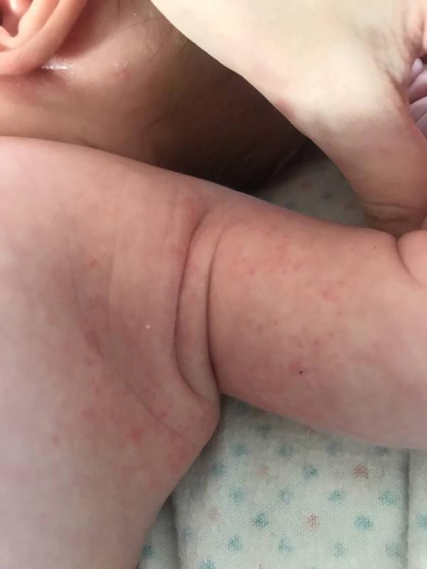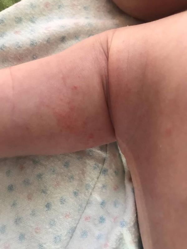 Девочки,дорогие,ребенку полтора месяца,сегодня возле подмышек высыпало вот такими прыщами,что это может быть?