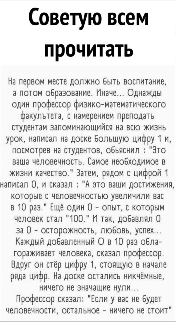 Как кто-то когда то сказал , что ребенок не будет слушать ваших советов , он будет брать с вас пример! Совершенно верно 👍🏻