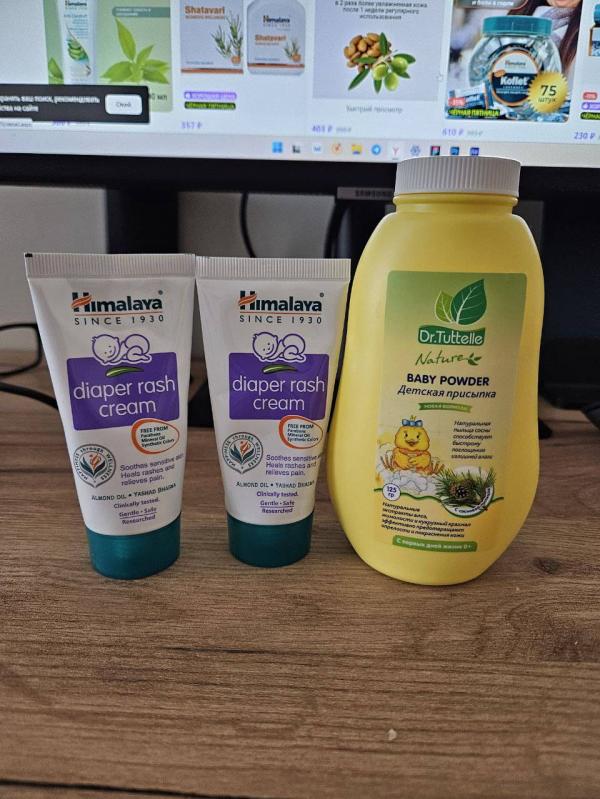 Продам: 1. Детская присыпка (желтая баночка) Baby Powder. 2. Детский крем (2 тюбика по 50 мл) под подгузник. За все 500 р., впе упаковки не использовались. Метро Кузьминки.