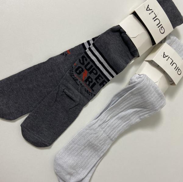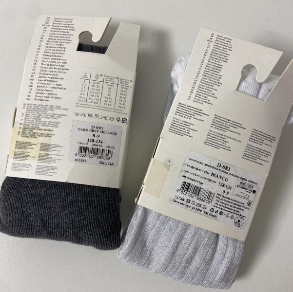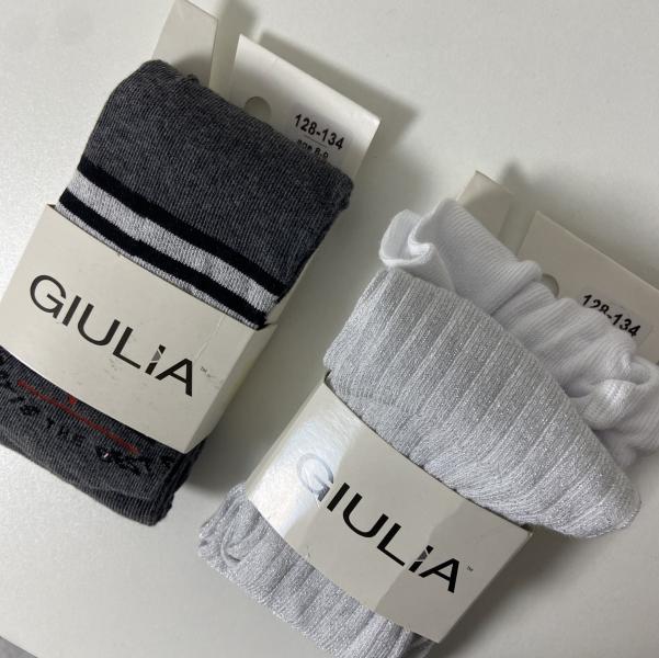Колготки Giulia 128/134 розмір. Одні сірі з написом вище пʼяти інші білі зі срібною люрексовою ниткою. Нові, забулися про них і вже будуть малі. Віддам 120грн/шт. Дивіться і інші мої оголошення.