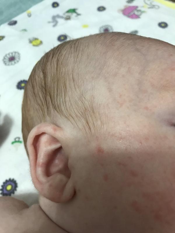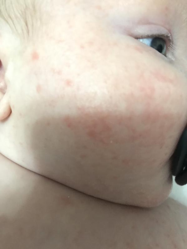 У малышарика такая сыпь появилась… педиатр сегодня сказала просто продолжать протирать фурацилином, а что это такое не объяснила даже, а меня смущает что она даже на ушах, эта сыпь….