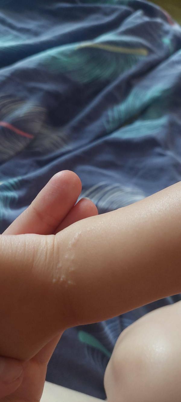 Добрый день! Где-то месяц назад вот это появилось на ручке младшей дочки. Думала,что раздражение какое-то, но оно вообще не проходит и никак не тревожит. Что это может быть? И к кому вообще идти в таких случаях,к дерматологу?