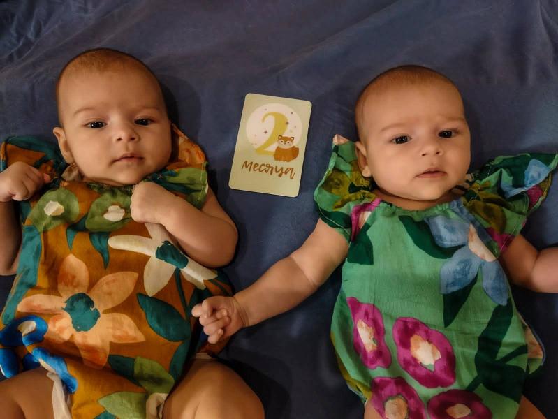 Когда-нибудь я выложу фотку день в день😅 Ну а пока вот двухмесячная фотка. Агата 4730 кг, 56 см🤎 Диана 4750 кг, 56,5 см💙